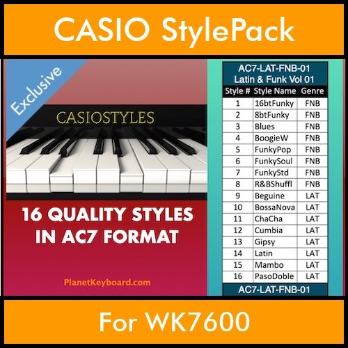 CasioStyles By PK Vol. 1 – Latin Funk Blues – 16 Styles for CASIO WK7600 in AC7 format