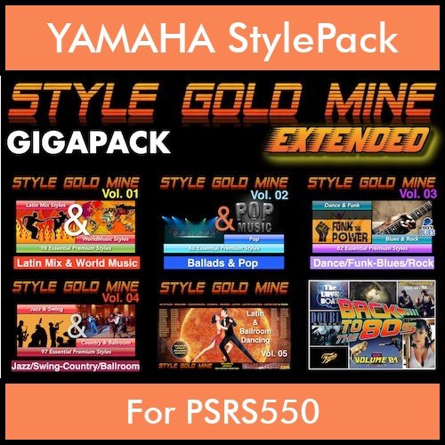 Explore endless creativity with StyleGoldMines Extended GIGAPACK Vol1 to Vol5 and BackToThe80s 428 Styles for your Yamaha PSR-S550 keyboard. Unleash the