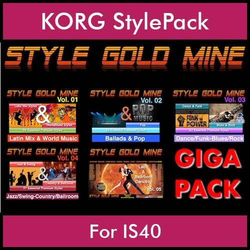 Explore boundless creativity with StyleGoldMine GIGAPACK STYLEGOLDMINE Vol1-5. Packed with 428 unique styles for your KORG IS40 keyboard these volumes will