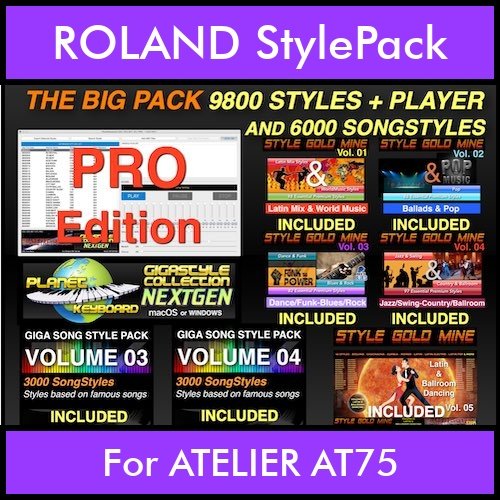 The BIG Pack By PK Incl. GSC NEXTGEN PRO 9800 Styles With Style Player Vol. 1 – 15800 Styles Splitted into – 9800 Styles and 6000 Song Styles for ROLAND ATELIER AT75 in STL format