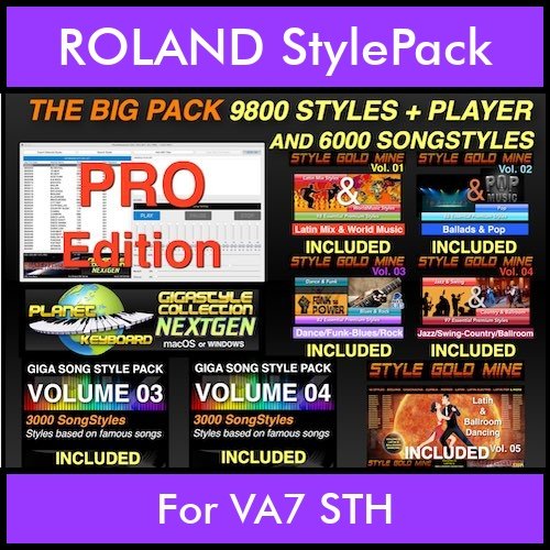 Unlock endless musical possibilities with the BIG Pack Includes 9800 GSC NEXTGEN PRO styles Style Player Vol1 and over 6000 song styles in ROLAND VA7 STH
